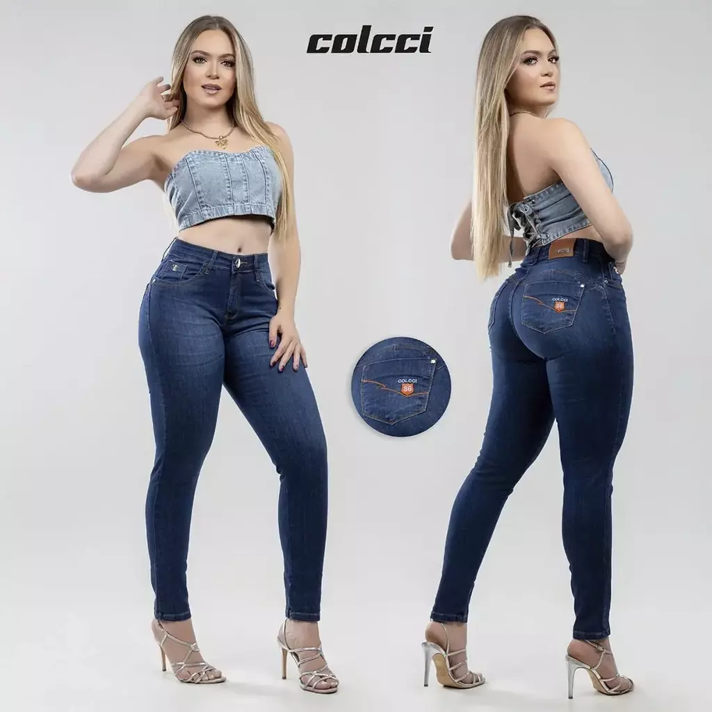 Tecido: denim premium com elastano.